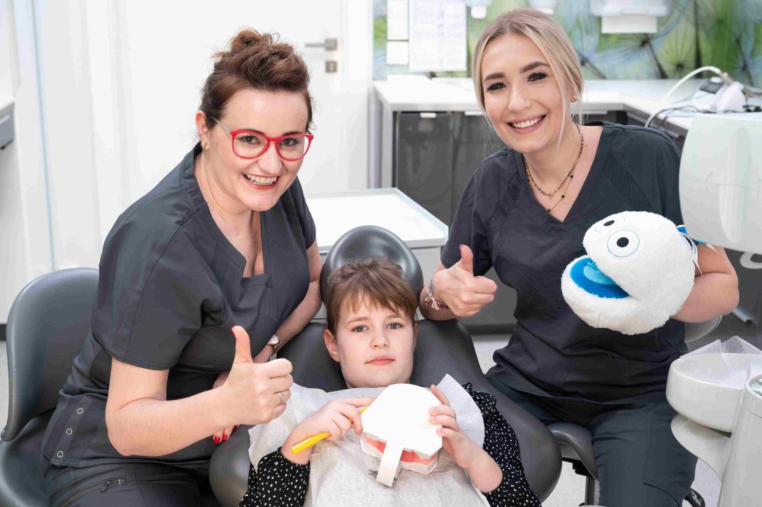 - montaż aparatu ortodontycznego – po przyklejeniu zamków oraz zamocowaniu łuków i elementów wspomagających ruch zębów, pacjent otrzymuje zalecenia dotyczące higieny jamy ustnej i pielęgnacji aparatu ortodontycznego. Opracowywany jest również harmonogram wizyt kontrolnych, które są niezbędne do skutecznego i bezpiecznego leczenia wad zgryzu.